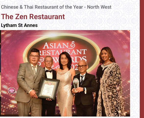 Proud to be named “ Chinese & Thai Restaurant of The Year 2025 “ for the fourth consecutive year at the Asian Restaurant Awards at the Manchester Deansgate Hotel on Monday 15th September 2025 hosted by BBC presenter Samantha Simmonds .